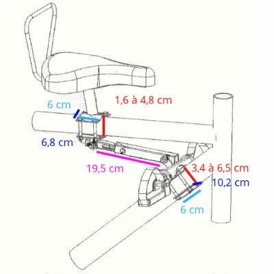 Ce siège selle se monte sur la barre horizontale du cadre de vélo. Il est ainsi adapté pour le vélo dit “pour homme”, c’est-à-dire avec le top tube droit et horizontal, de 16 à 48 mm de diamètre. Ce dispositif convient aux cadres ayant un tube inférieur rond et large dont le diamètre est compris entre 34 et 65 mm. Consultez la notice d’installation de la selle sur cadre pour plus d’informations.