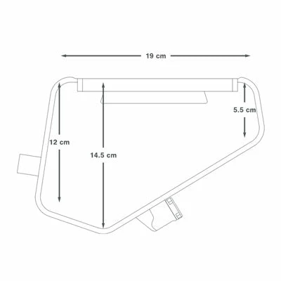 - Hauteur : 5.5 cm pour la partie la plus courte jusqu’à 14.5 cm pour la partie la plus longue et 12 cm pour la partie où se trouve le clip de maintien.