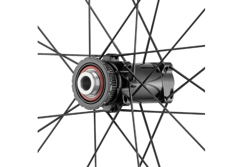 Le système est complété par des moyeux en aluminium, conçus sur des machines à commande numérique, qui soutiennent 24 rayons « straight pull », garantissant une rigidité maximale à l’ensemble, tant en accélération que durant le freinage, sans les influences dues à la nature asymétrique des forces venant du disque et de la cassette.